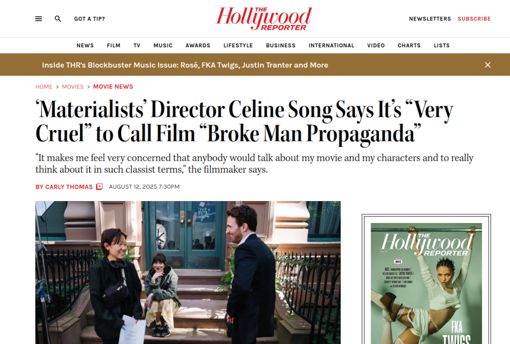 O segundo filme de Celine Song, Materialists, é muito melhor que o primeiro. O primeiro não é ruim — na verdade, é muito bom — mas eu tenho diferenças significativas a respeito do modo como o filme apresenta certas coisas. O melhor desse segundo filme é a reflexão sobre a lógica do match, a lógica de aplicações como o Tinder. O filme aborda essa lógica sem sequer mencionar as aplicações, e esse é um truque genial.